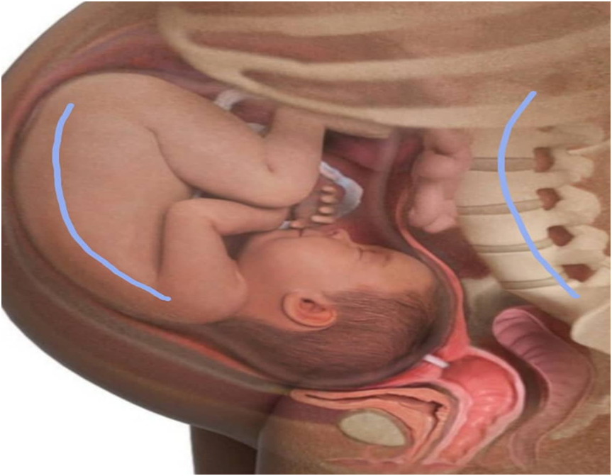 وقتی ستون فقرات جنین در مجاورت ستون فقرات مادر قرار می گیرد زایمان طولانی خواهد شد مادر در روز زایمان درد بسیار شدیدی درناحیه کمر احساس خواهد کرد . در معاینه های متعدد لگنی ، پیشرفتی در میزان باز شدن دهانه رحم ، نزول سر جنین دیده نمی شود .