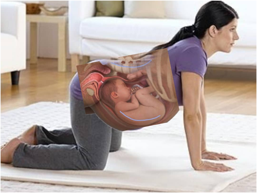 در این تمرین ، ما از جاذبه زمین کمک می گیریم تا موقعیت جنین را در رحم مادر اصلاح کند . جاذبه زمین اجسام سنگین را با قدرت بیشتری به سمت خود می کشد . ستون فقرات جنین ، سنگین ترین قسمت بدن جنین است در نتیجه ستون فقرات جنین به نحوی تغییر پوزیشن می دهد که خط عمود با زمین بسازد و درست در مقابل ستون فقرات مادر قرار بگیرد یعنی بهترین تمرین موقعیت قرارگیری جنین برای یک زایمان راحت ?