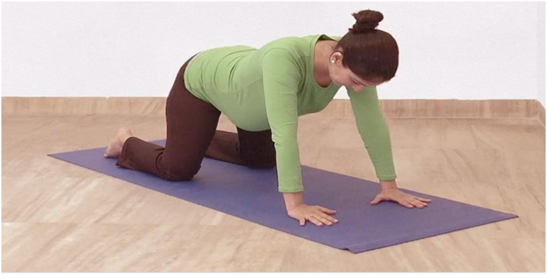 نکته 1 : اگر نمی تونید در حالت چهار دست و پا مثل عکس سمت راست از کف دست استفاده کنید از آرنج ها مثل عکس سمت چپ استفاده کنید و از یک بالشت سفت زیر آرنج استفاده کنید .